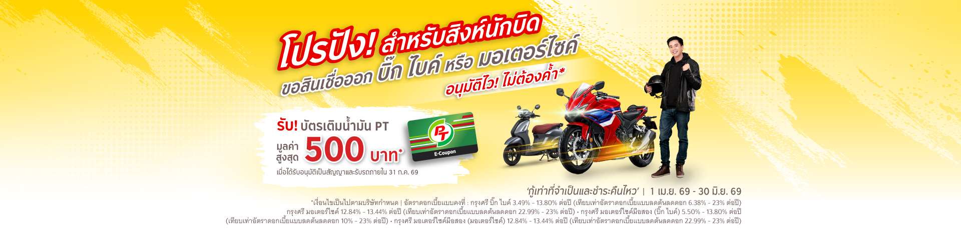 ***หมายเหตุ: กรณีลูกค้าเดินไปสมัครสินเชื่อที่หน้าร้านแทนจำหน่ายรถจักรยานยนต์โดยไม่ได้คลิกสมัครจาก URL ที่กำหนดจะไม่ร่วมรายการส่งเสริมการขายนี้